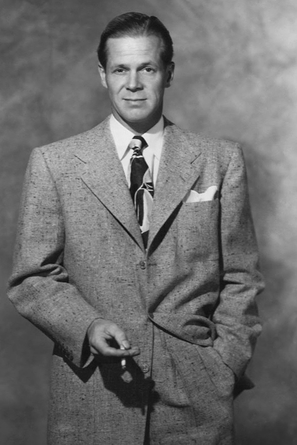 From Wikipedia, the free encyclopedia Dan Duryea (January 23, 1907, in White Plains, New York – June 7, 1968, in Hollywood, California) was an American actor of film, stage and television. Duryea graduated from Cornell University in 1928. While at Cornell, Duryea was elected into the Sphinx Head Society. He made his name on Broadway in the play Dead End, followed by The Little Foxes, in which he played the dishonest and not particularly bright weakling Leo Hubbard. He moved to Hollywood in 1940 to appear in the film version in the same role. He established himself in films playing similar secondary roles as the foil, usually as a weak or annoyingly immature character, in movies such as The Pride of the Yankees. As his career progressed throughout the 1940s he began to carve a niche as a violent, yet sexy, bad guy in a number of film noirs. In so doing he established a significant female following and, over time, something of a cult status. His work in this era included Scarlet Street, The Woman in the Window, Criss Cross, Black Angel and Too Late for Tears. From the 1950s, Duryea was more often seen in Westerns, most notably his charismatic villain in Winchester '73 (1950). Other memorable work in the latter part of his career included Thunder Bay (1953), The Burglar (1957), The Flight of the Phoenix (1965), and the primetime soap opera Peyton Place. He also appeared in one of the first Twilight Zone episodes in 1959 as a drunken former gunfighter in "Mr. Denton on Doomsday," written by Rod Serling. He guest starred on NBC's anthology series The Barbara Stanwyck Show. In 1963, Duryea appeared as Dr. Ben Lorrigan in the episode "Why Am I Grown So Cold" on the NBC medical drama about psychiatry, The Eleventh Hour. Duryea was far removed from many of the characters he played in the course of his career. He was married for thirty-five years to his wife, Helen, who preceded him in death on January 21, 1967. The couple had two sons: Peter, who worked for a time as an actor, and Richard. Dan Duryea died of cancer at the age of sixty-one. His remains are interred in Forest Lawn Hollywood Hills Cemetery in Los Angeles, California. Description above from the Wikipedia article Dan Duryea, licensed under CC-BY-SA, full list of contributors on Wikipedia.